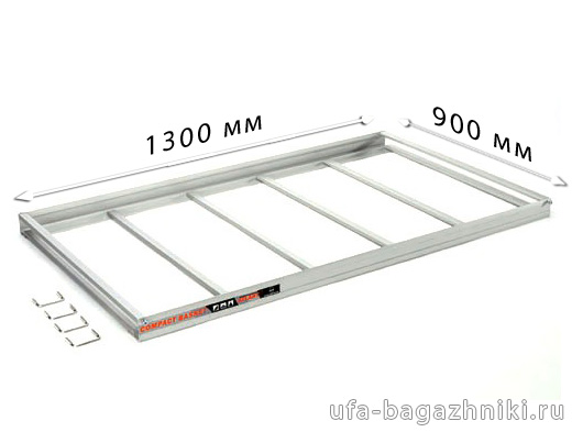 Грузовая корзина Atlant (Россия) для установки на багажные дуги прямоугольного или аэродинамического профиля. Материал - алюминий, размер 1300х900 мм. Грузоподъемность 50 кг.