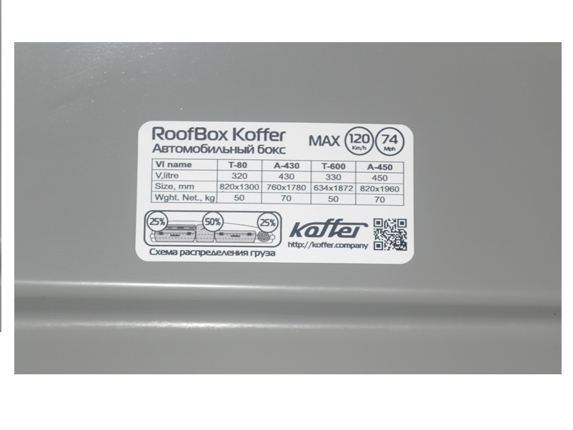 Конструкция изготавливается из пластика AБС - ударопрочного технического термопластического материала. Параметры автобокса Koffer A-430: