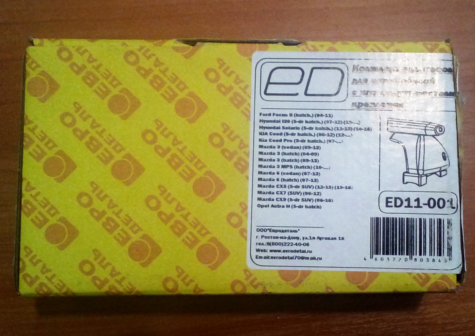Адаптеры для багажника Ford Focus 2 (hatch 04-11), Hyundai i30 (hatch, 07-12, 12-...), Hyundai Solaris (hatch, 11-16), Kia Ceed (hatch, 06-12, 12-...), Kia Ceed Pro (hatch, 07-...), Mazda 3 (sedan 09-13), Mazda 3 (hatch 04-13), Mazda 3 MPS (hatch 10-...), Mazda 6 (sedan/hatch 07-13) Mazda CX5 (12-16), Mazda CX7 (06-12), Mazda CX9 (06-16), Opel Astra H (hatch), Евродеталь, под опору для гладкой крыши.