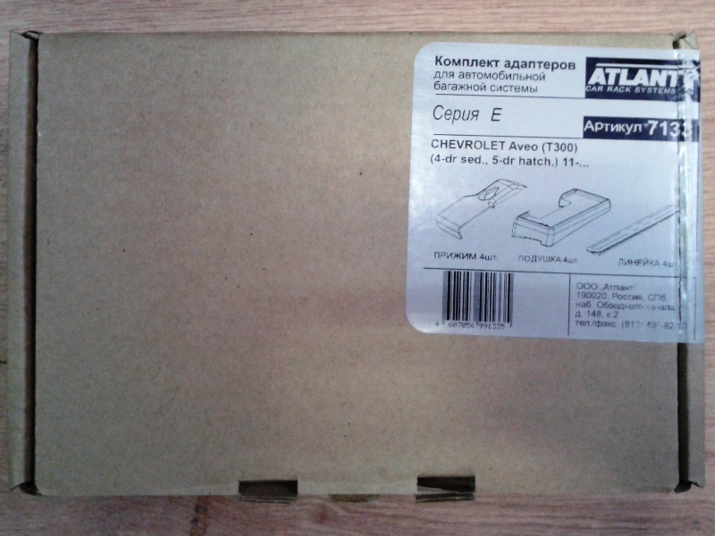 Комплект адаптеров Chevrolet Aveo T300 2011-... sedan/hatchback – это набор специально спроектированных крепёжных кронштейнов, резинотехнических изделий, болтов, шайб и т.п., с помощью которых опоры фиксируются на крыше. Крепёжные кронштейны (прижимы) изготавливаются из конструкционной стали и покрываются слоем полиуретана, предохраняющего лакокрасочное покрытие кузова от повреждений при установке и эксплуатации. Комплект адаптеров включает инструкцию по сборке.