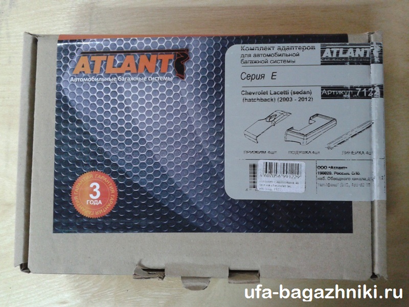 Комплект адаптеров Chevrolet Lacetti sedan/hatchback – это набор специально спроектированных крепёжных кронштейнов, резинотехнических изделий, болтов, шайб и т.п., с помощью которых опоры фиксируются на крыше. Крепёжные кронштейны (прижимы) изготавливаются из конструкционной стали и покрываются слоем полиуретана, предохраняющего лакокрасочное покрытие кузова от повреждений при установке и эксплуатации. Комплект адаптеров включает инструкцию по сборке.