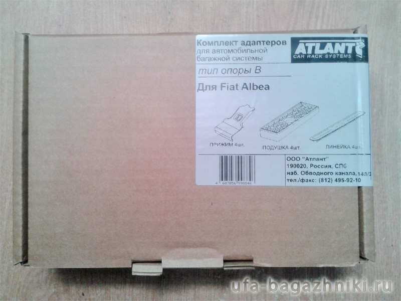 Комплект адаптеров Fiat Albea – это набор специально спроектированных крепёжных кронштейнов, резинотехнических изделий, болтов, шайб и т.п., с помощью которых опоры фиксируются на крыше. Крепёжные кронштейны (прижимы) изготавливаются из конструкционной стали и покрываются слоем полиуретана, предохраняющего лакокрасочное покрытие кузова от повреждений при установке и эксплуатации. Комплект адаптеров включает инструкцию по сборке.