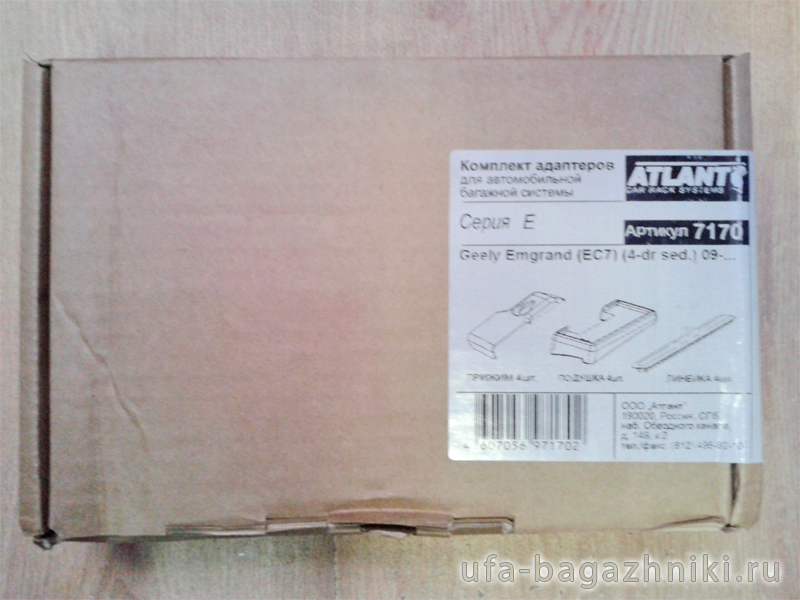 Комплект адаптеров Geely Emgrand (EC7) (sedan) 09-... – это набор специально спроектированных крепёжных кронштейнов, резинотехнических изделий, болтов, шайб и т.п., с помощью которых опоры фиксируются на крыше. Крепёжные кронштейны (прижимы) изготавливаются из конструкционной стали и покрываются слоем полиуретана, предохраняющего лакокрасочное покрытие кузова от повреждений при установке и эксплуатации. Комплект адаптеров включает инструкцию по сборке.