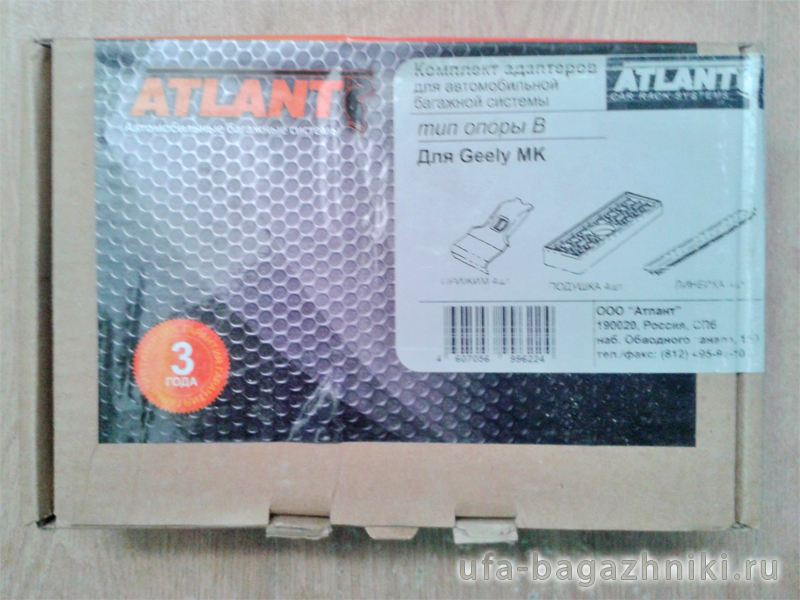 Комплект адаптеров Geely MK 2004г-... – это набор специально спроектированных крепёжных кронштейнов, резинотехнических изделий, болтов, шайб и т.п., с помощью которых опоры фиксируются на крыше. Крепёжные кронштейны (прижимы) изготавливаются из конструкционной стали и покрываются слоем полиуретана, предохраняющего лакокрасочное покрытие кузова от повреждений при установке и эксплуатации. Комплект адаптеров включает инструкцию по сборке.