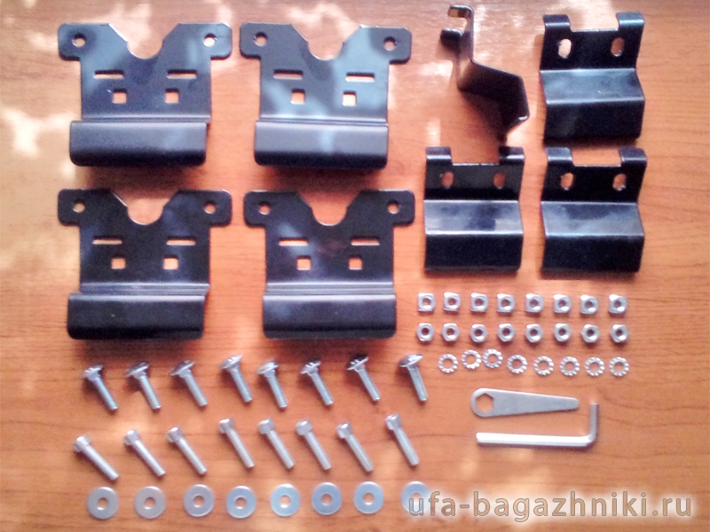 Комплект адаптеров Haval H6 2014-... – это набор специально спроектированных крепёжных кронштейнов, резинотехнических изделий, болтов, шайб и т.п., с помощью которых опоры фиксируются на крыше (на интегрированных рейлингах). Крепёжные кронштейны (прижимы) изготавливаются из конструкционной стали и покрываются слоем полиуретана, предохраняющего рейлинг от повреждений при установке и эксплуатации.