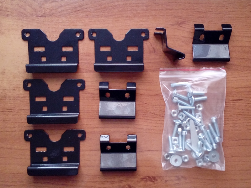 Комплект адаптеров Lexus NX 2017-... – это набор специально спроектированных крепёжных кронштейнов, резинотехнических изделий, болтов, шайб и т.п., с помощью которых опоры фиксируются на крыше (на интегрированных рейлингах). Крепёжные кронштейны (прижимы) изготавливаются из конструкционной стали и покрываются слоем полиуретана, предохраняющего рейлинг от повреждений при установке и эксплуатации.