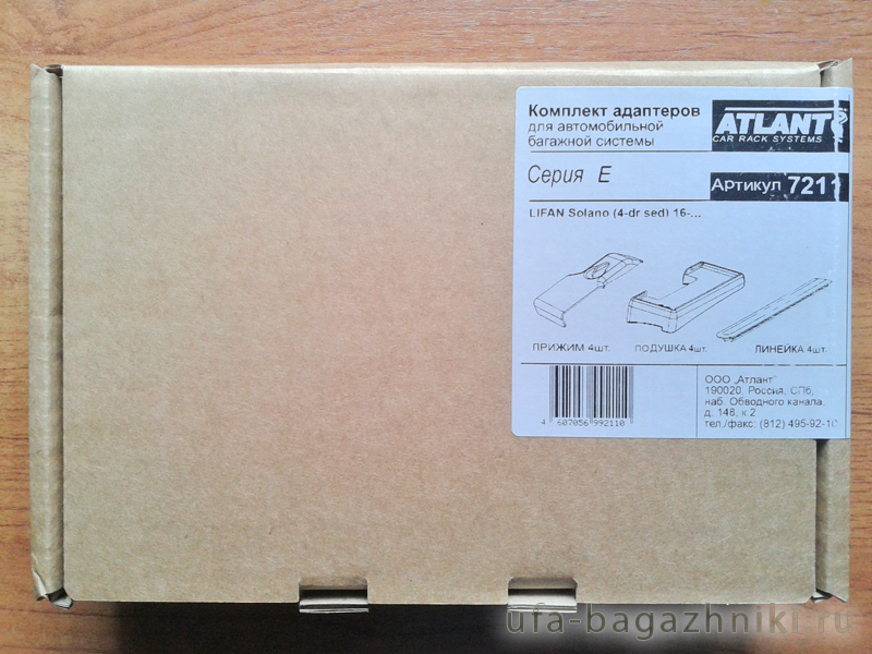 Комплект адаптеров Lifan Solano II (4-dr sedan) 16-... – это набор специально спроектированных крепёжных кронштейнов, резинотехнических изделий, болтов, шайб и т.п., с помощью которых опоры фиксируются на крыше. Крепёжные кронштейны (прижимы) изготавливаются из конструкционной стали и покрываются слоем полиуретана, предохраняющего лакокрасочное покрытие кузова от повреждений при установке и эксплуатации. Комплект адаптеров включает инструкцию по сборке.
