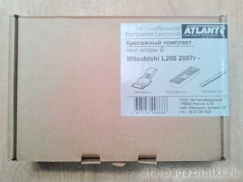 Комплект адаптеров Mitsubishi L200 2007-15 – это набор специально спроектированных крепёжных кронштейнов, резинотехнических изделий, болтов, шайб и т.п., с помощью которых опоры фиксируются на крыше. Крепёжные кронштейны (прижимы) изготавливаются из конструкционной стали и покрываются слоем полиуретана, предохраняющего лакокрасочное покрытие кузова от повреждений при установке и эксплуатации. Комплект адаптеров включает инструкцию по сборке.