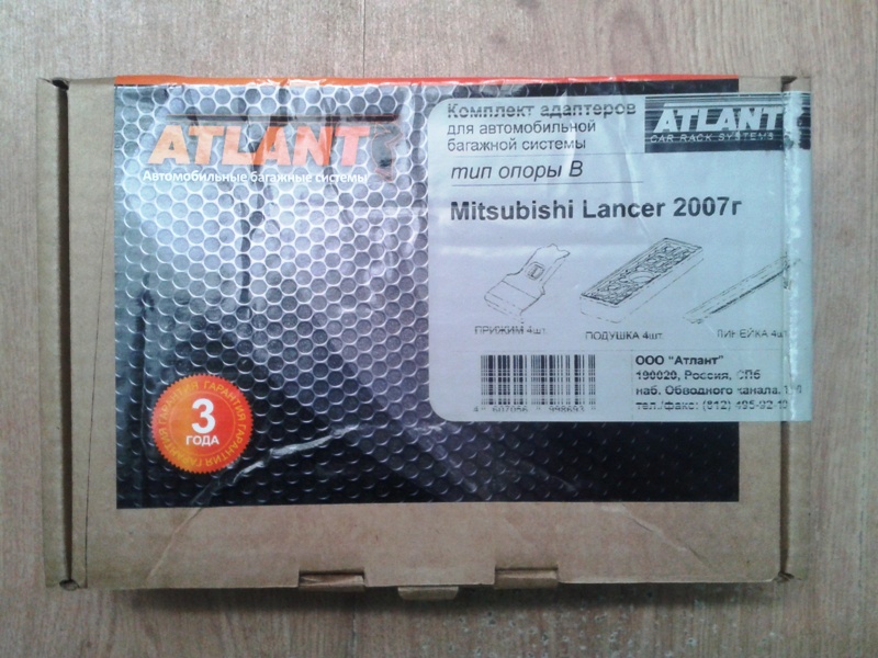 Комплект адаптеров Mitsubishi Lancer 10 2007г-... sedan – это набор специально спроектированных крепёжных кронштейнов, резинотехнических изделий, болтов, шайб и т.п., с помощью которых опоры фиксируются на крыше. Крепёжные кронштейны (прижимы) изготавливаются из конструкционной стали и покрываются слоем полиуретана, предохраняющего лакокрасочное покрытие кузова от повреждений при установке и эксплуатации. Комплект адаптеров включает инструкцию по сборке.