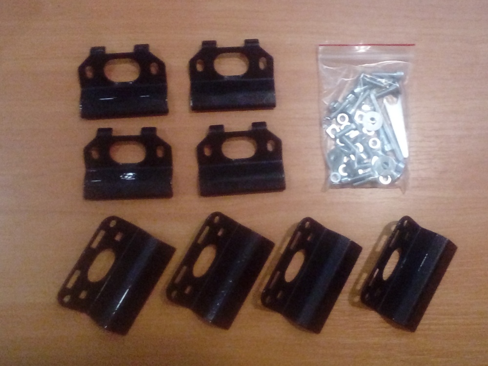 Комплект адаптеров Mitsubishi Outlander 3 (2012-...), Mitsubishi Pajero Sport 2015-..., Mitsubishi Eclipse Cross 2017-... – это набор специально спроектированных крепёжных кронштейнов, резинотехнических изделий, болтов, шайб и т.п., с помощью которых опоры фиксируются на крыше (на интегрированных рейлингах). Крепёжные кронштейны (прижимы) изготавливаются из конструкционной стали и покрываются слоем полиуретана, предохраняющего рейлинг от повреждений при установке и эксплуатации.