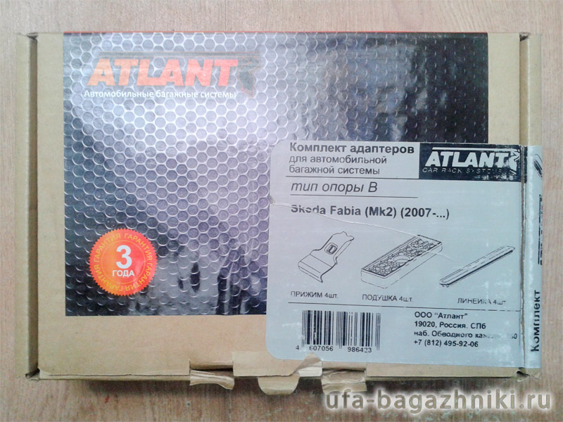 Комплект адаптеров Skoda Fabia MK2 универсал– это набор специально спроектированных крепёжных кронштейнов, резинотехнических изделий, болтов, шайб и т.п., с помощью которых опоры фиксируются на крыше. Крепёжные кронштейны (прижимы) изготавливаются из конструкционной стали и покрываются слоем полиуретана, предохраняющего лакокрасочное покрытие кузова от повреждений при установке и эксплуатации. Комплект адаптеров включает инструкцию по сборке.