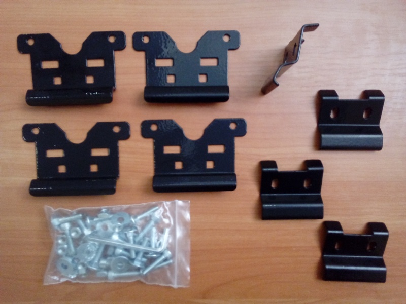 Комплект адаптеров Suzuki Vitara 2015-..., Suzuki SX4 2013-... – это набор специально спроектированных крепёжных кронштейнов, резинотехнических изделий, болтов, шайб и т.п., с помощью которых опоры фиксируются на крыше (на интегрированных рейлингах). Крепёжные кронштейны (прижимы) изготавливаются из конструкционной стали и покрываются слоем полиуретана, предохраняющего рейлинг от повреждений при установке и эксплуатации.