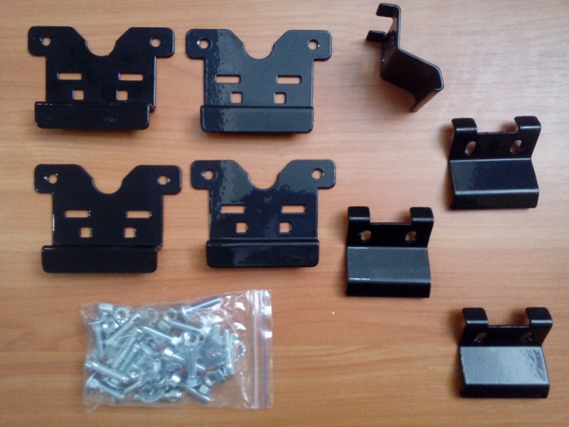 Комплект адаптеров Toyota Fortuner, 2015-... – это набор специально спроектированных крепёжных кронштейнов, резинотехнических изделий, болтов, шайб и т.п., с помощью которых опоры фиксируются на крыше (на интегрированных рейлингах). Крепёжные кронштейны (прижимы) изготавливаются из конструкционной стали и покрываются слоем полиуретана, предохраняющего рейлинг от повреждений при установке и эксплуатации.