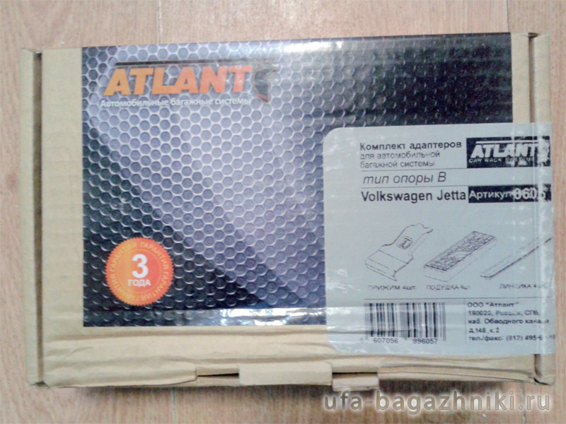 Комплект адаптеров Volkswagen Jetta – это набор специально спроектированных крепёжных кронштейнов, резинотехнических изделий, болтов, шайб и т.п., с помощью которых опоры фиксируются на крыше. Крепёжные кронштейны (прижимы) изготавливаются из конструкционной стали и покрываются слоем полиуретана, предохраняющего лакокрасочное покрытие кузова от повреждений при установке и эксплуатации. Комплект адаптеров включает инструкцию по сборке.