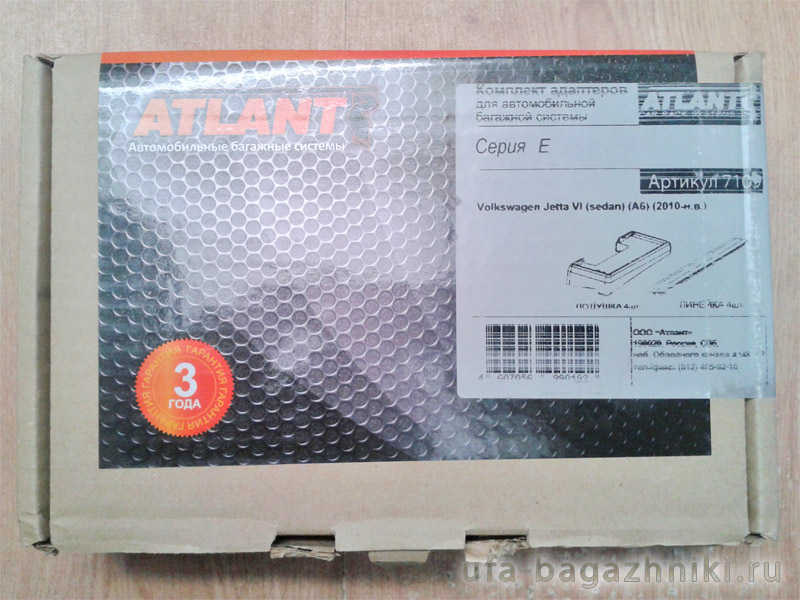 Комплект адаптеров Volkswagen Jetta A6 – это набор специально спроектированных крепёжных кронштейнов, резинотехнических изделий, болтов, шайб и т.п., с помощью которых опоры фиксируются на крыше. Крепёжные кронштейны (прижимы) изготавливаются из конструкционной стали и покрываются слоем полиуретана, предохраняющего лакокрасочное покрытие кузова от повреждений при установке и эксплуатации. Комплект адаптеров включает инструкцию по сборке.