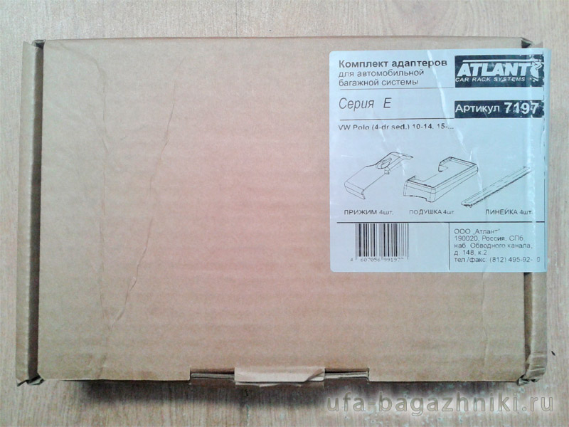 Комплект адаптеров Volkswagen Polo sedan (2010-...) – это набор специально спроектированных крепёжных кронштейнов, резинотехнических изделий, болтов, шайб и т.п., с помощью которых опоры фиксируются на крыше. Крепёжные кронштейны (прижимы) изготавливаются из конструкционной стали и покрываются слоем полиуретана, предохраняющего лакокрасочное покрытие кузова от повреждений при установке и эксплуатации. Комплект адаптеров включает инструкцию по сборке.