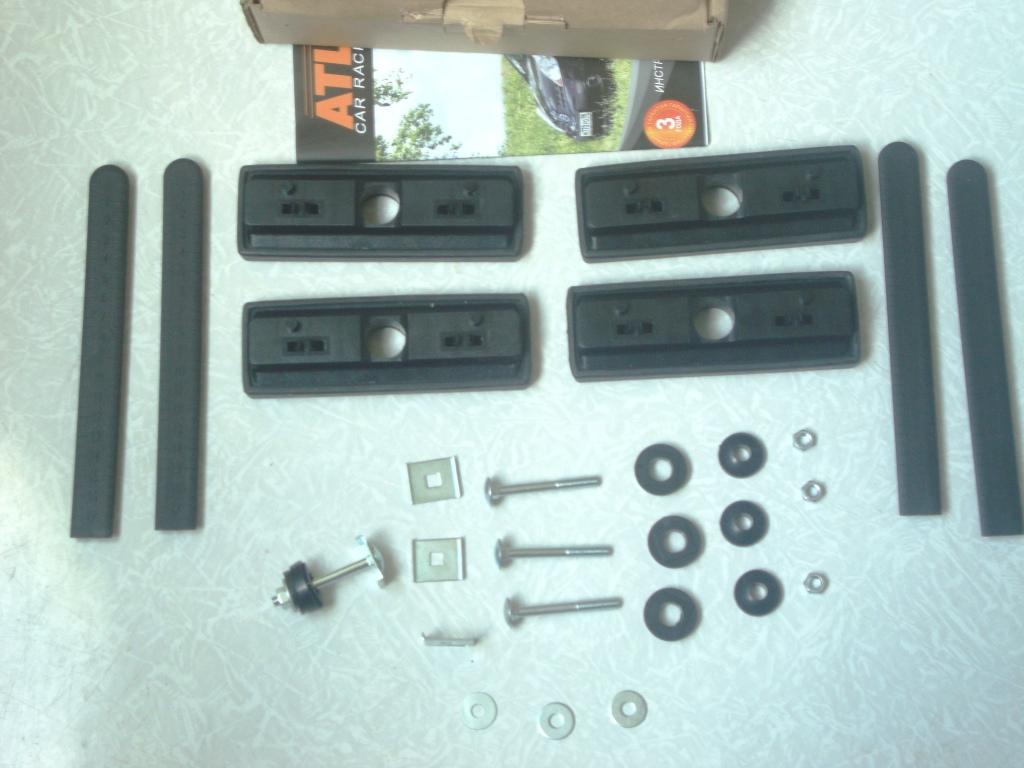 Комплект адаптеров на Т-профиль – это набор специально спроектированных крепёжных кронштейнов, резинотехнических изделий, болтов, шайб и т.п., с помощью которых опоры фиксируются на крыше. Крепёжные кронштейны (прижимы) изготавливаются из конструкционной стали и покрываются слоем полиуретана, предохраняющего лакокрасочное покрытие кузова от повреждений при установке и эксплуатации. Комплект адаптеров включает инструкцию по сборке.