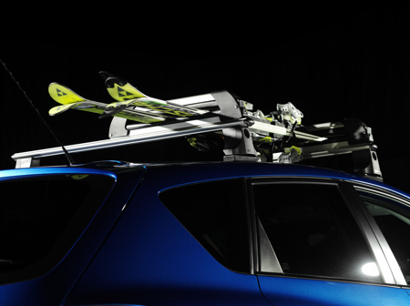 Для перевозки лыж рекомендуется использовать специальные крепления на багажные дуги на крыше автомобиля. Это сэкономит место в салоне и сохранит его в сухом и чистом состоянии. Представляем багажник для лыж и сноубордов "Атлант" (Россия), предназначенный для перевозки 4 пар лыж или 2 сноубордов на крыше в горизонтальном положении. Ширина зажимной рабочей области - 42 см.