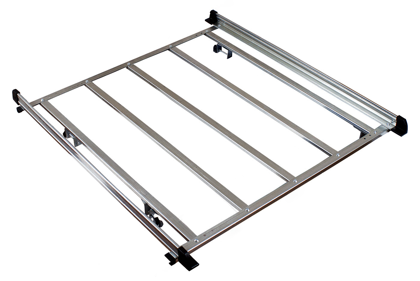 Дуги багажника изготовлены из стального прямоугольного профиля, длиной 120 см. Поверх каждой дуги имеется пластиковая оболочка черного цвета. Крепление опор производится в штатные места автомобиля. Корзина размером 1060х1000 мм, имеет 2 боковых борта и 4 прямоугольных поперечины. Реечный багажник и грузовую корзину можно использовать по отдельности. Общий вес конструкции - 9 кг.