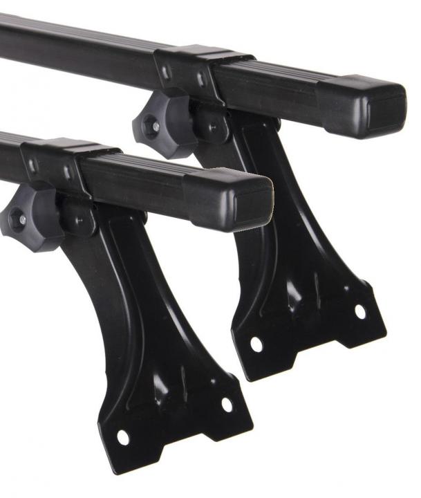 Дуги багажника изготовлены из стального прямоугольного профиля, длиной 130 см. Поверх каждой дуги имеется пластиковая оболочка черного цвета. Крепление опор производится в штатные места автомобиля. Корзина размером 1060х1000 мм, имеет 2 боковых борта и 4 прямоугольных поперечины. Реечный багажник и грузовую корзину можно использовать по отдельности. Общий вес конструкции - 9 кг.