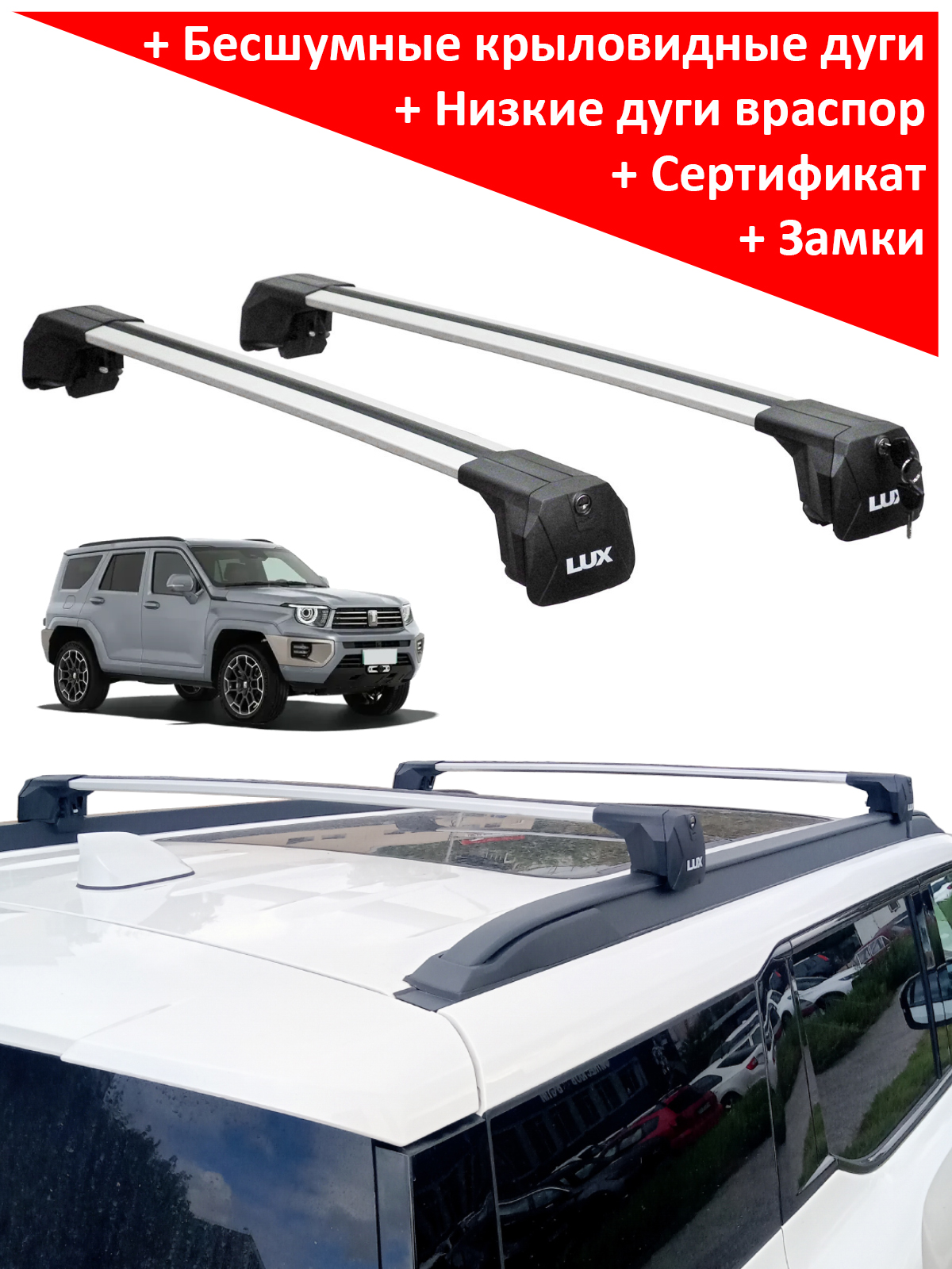 Багажник на интегрированные рейлинги Tank 700 (внедорожник, 2024-...) - Lux Scout 2, серебристые крыловидные дуги, с замком.