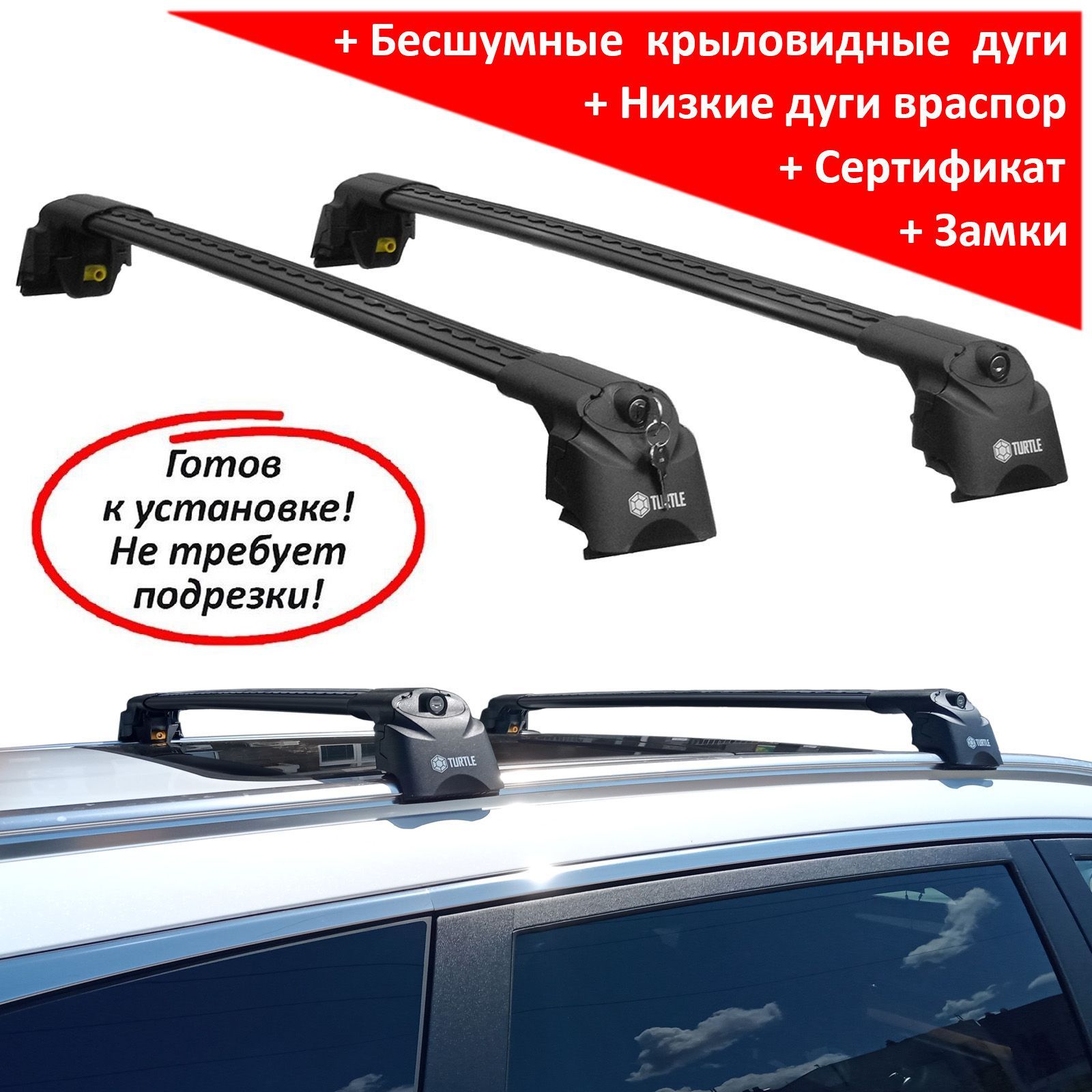 Багажник на Черри Тигго 8 Про / Про Макс (Chery Tiggo 8 Pro / Pro Max), на интегрированные рейлинги, Turtle Air 2 Go!, черные дуги (Подрезан под размер)