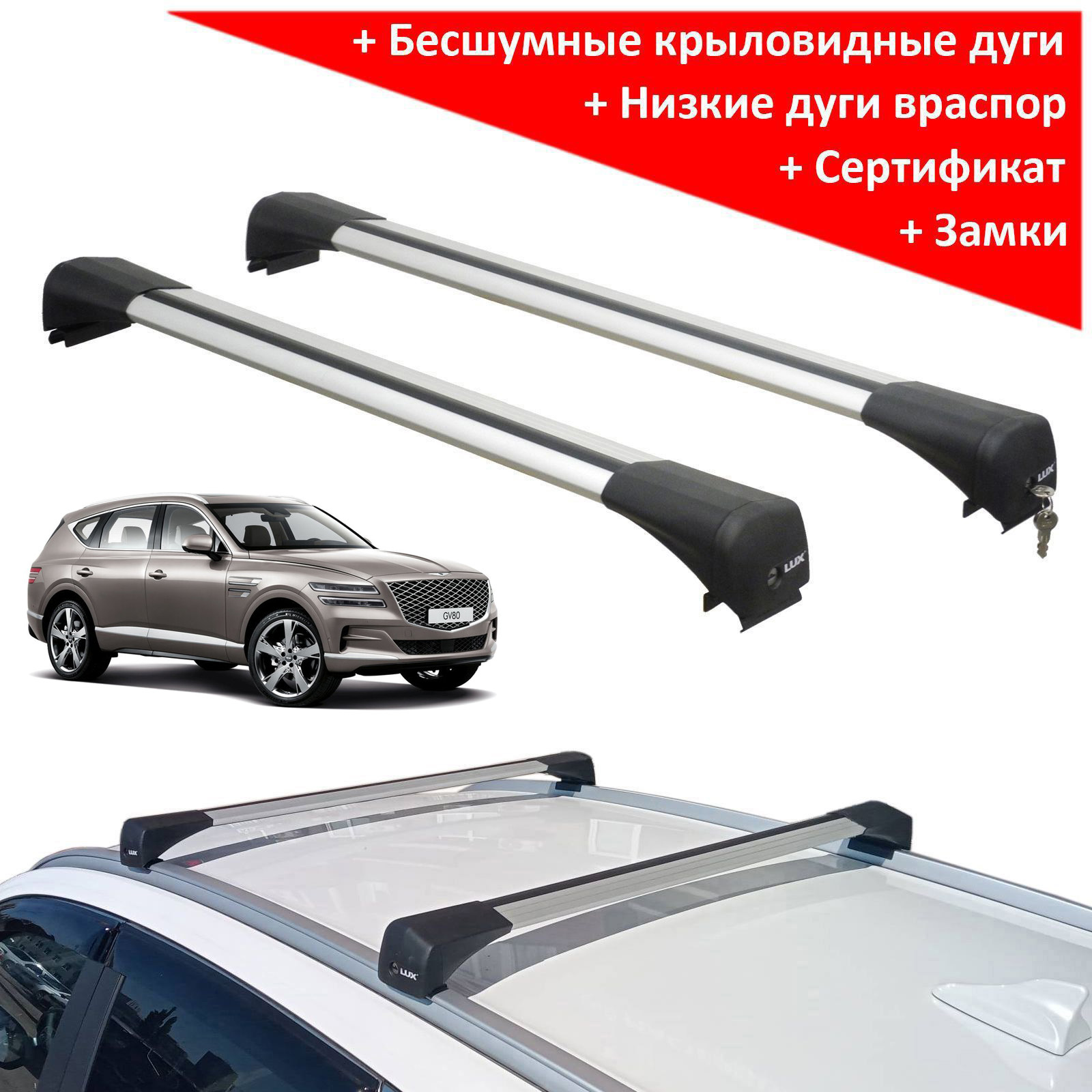 Багажник на интегрированные рейлинги Genesis Gv80 (2020-...), Lux Bridge, крыловидные дуги (серебристый цвет)