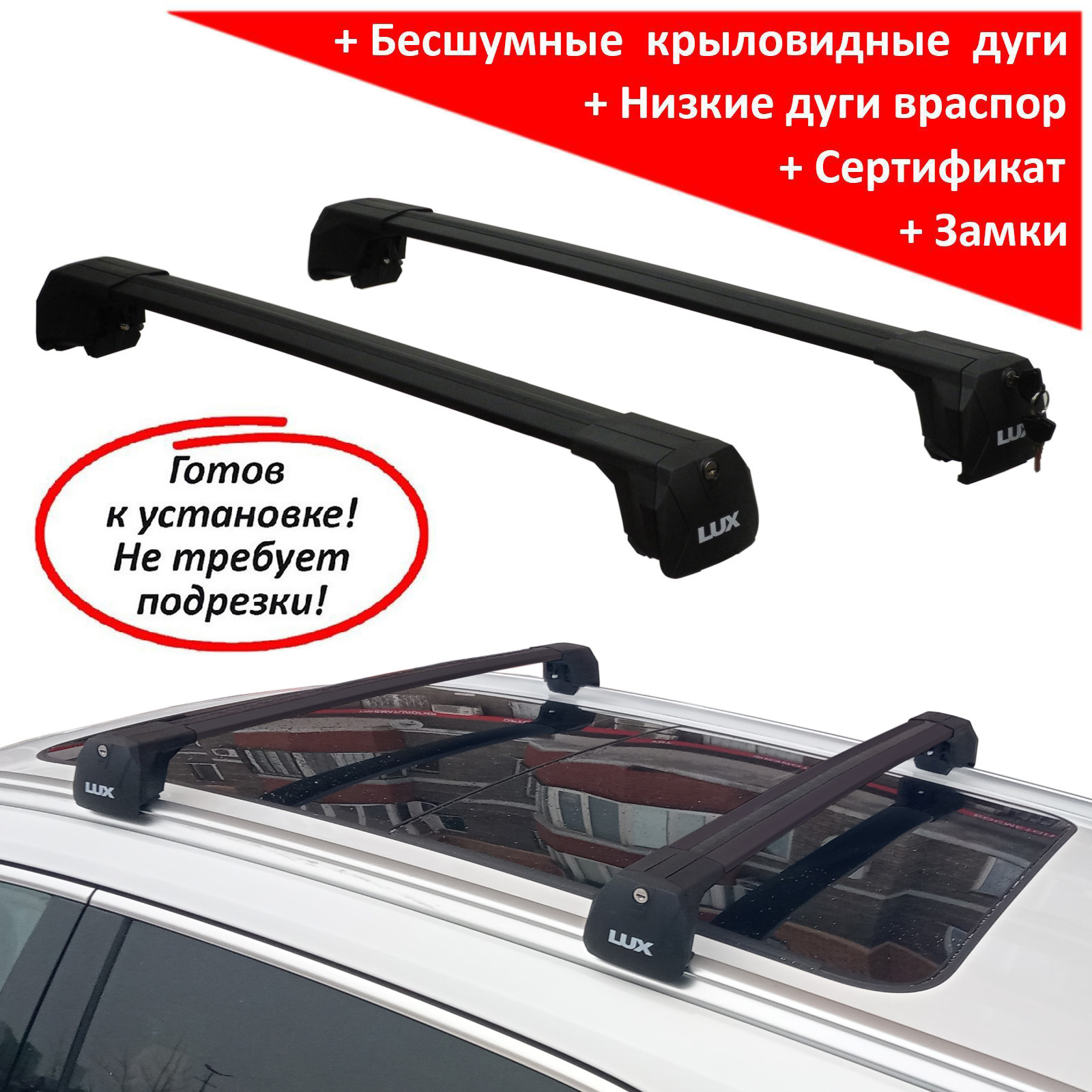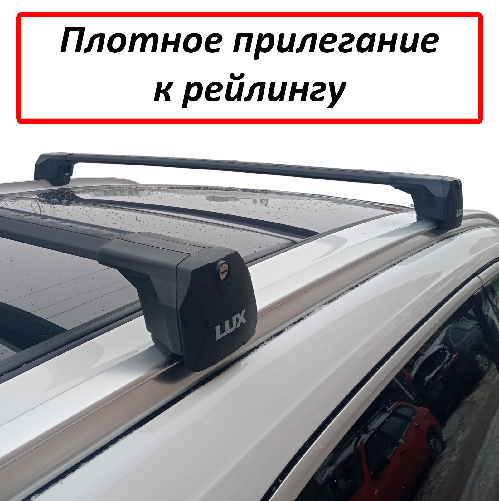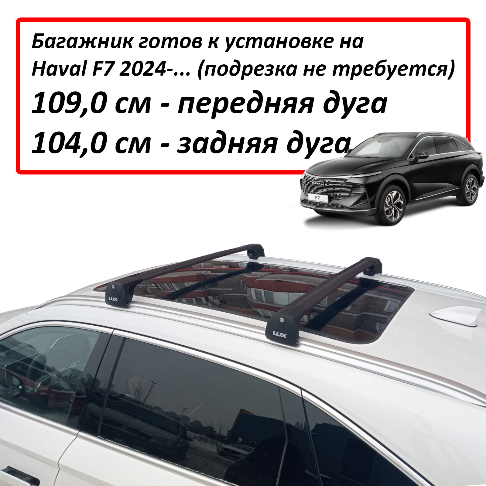 Багажник на интегрированные рейлинги Haval F7 (2024-...) - Lux Scout (враспор, без вылетов), черные крыловидные дуги, с замком. Готов к установке, не требует подрезки. Нагрузка до 100 кг.