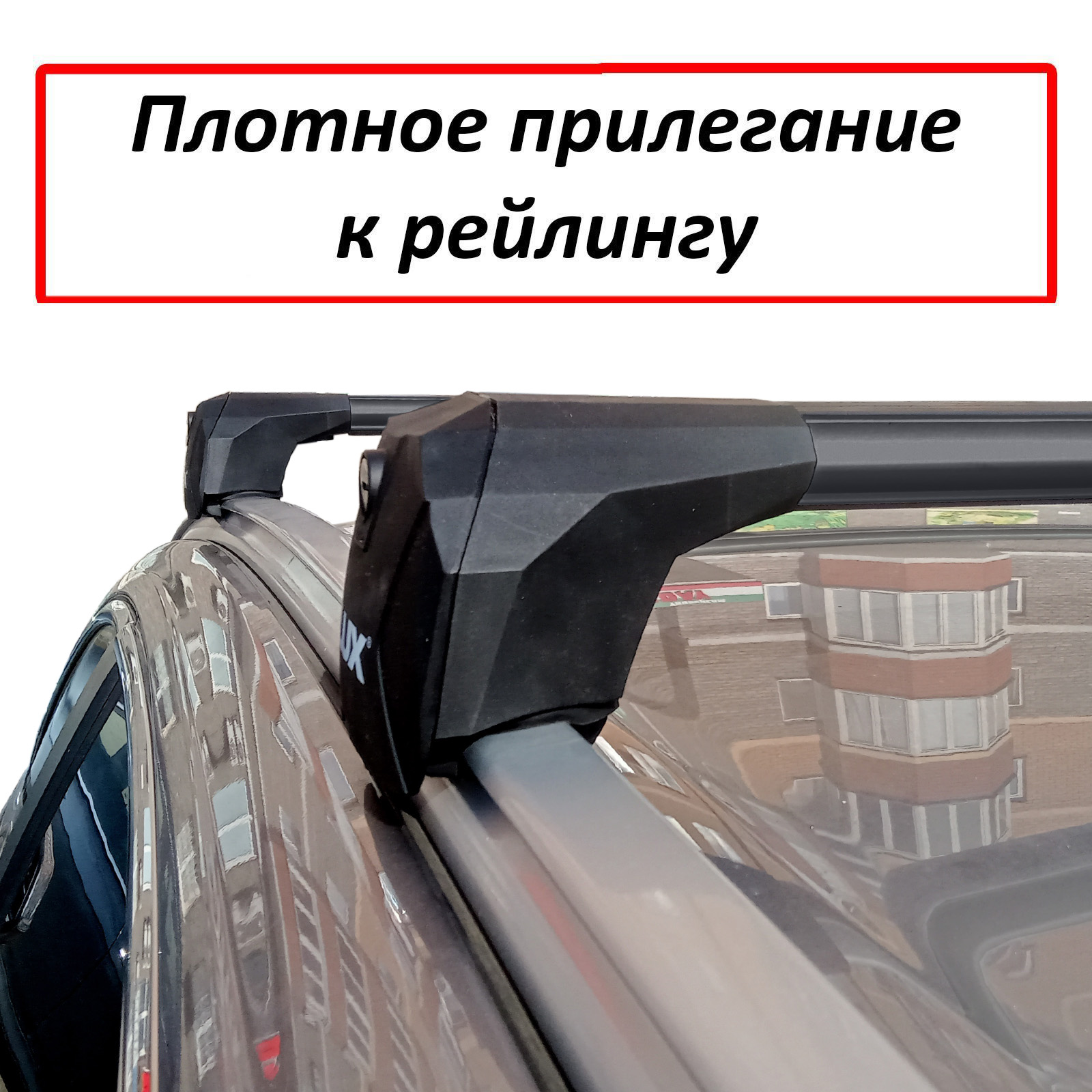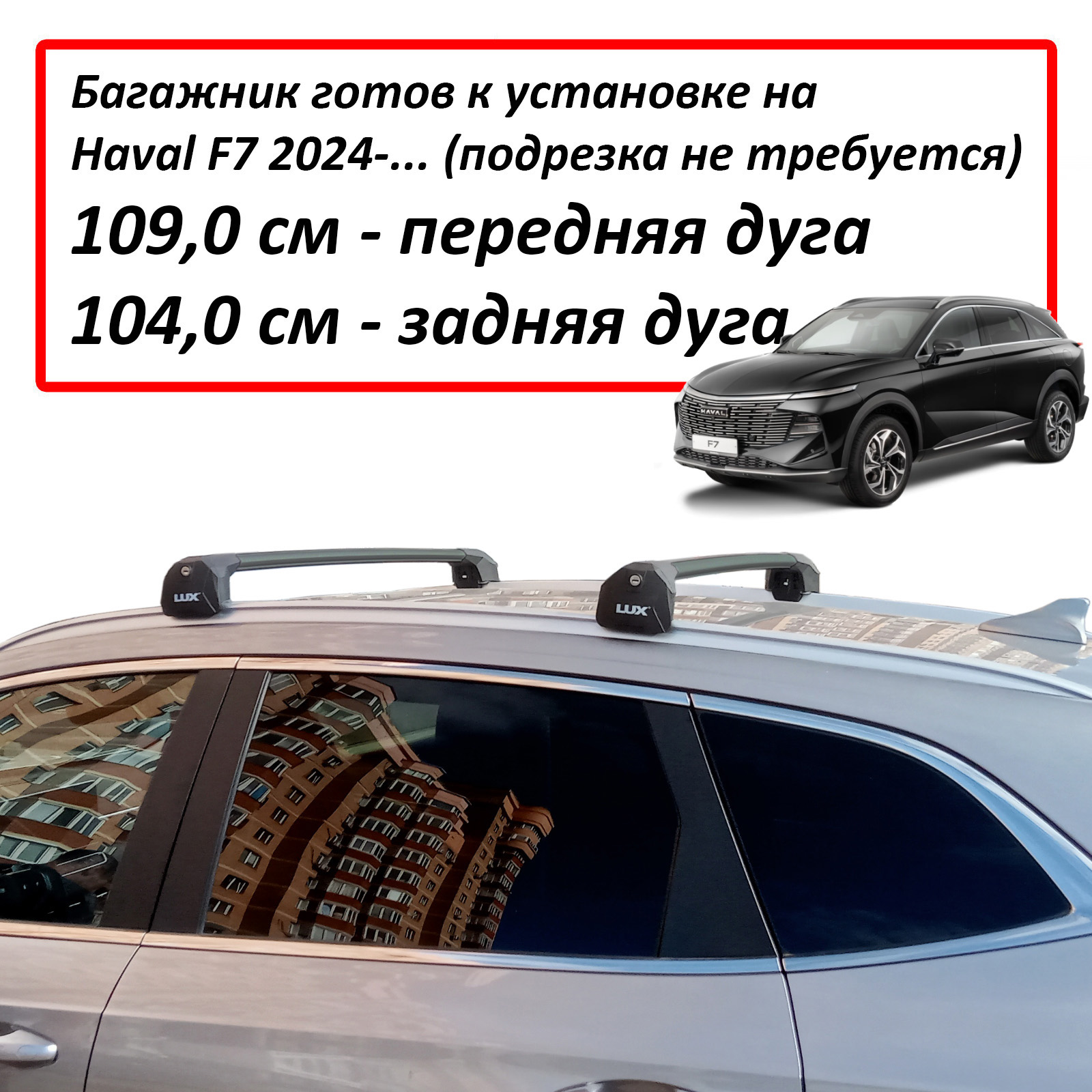 Багажник на интегрированные рейлинги Haval F7 (2024-...) - Lux Scout (враспор, без вылетов), черные аэродинамические дуги, с замком. Готов к установке, не требует подрезки. Нагрузка до 85 кг.