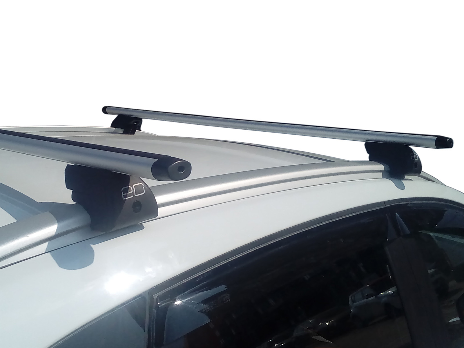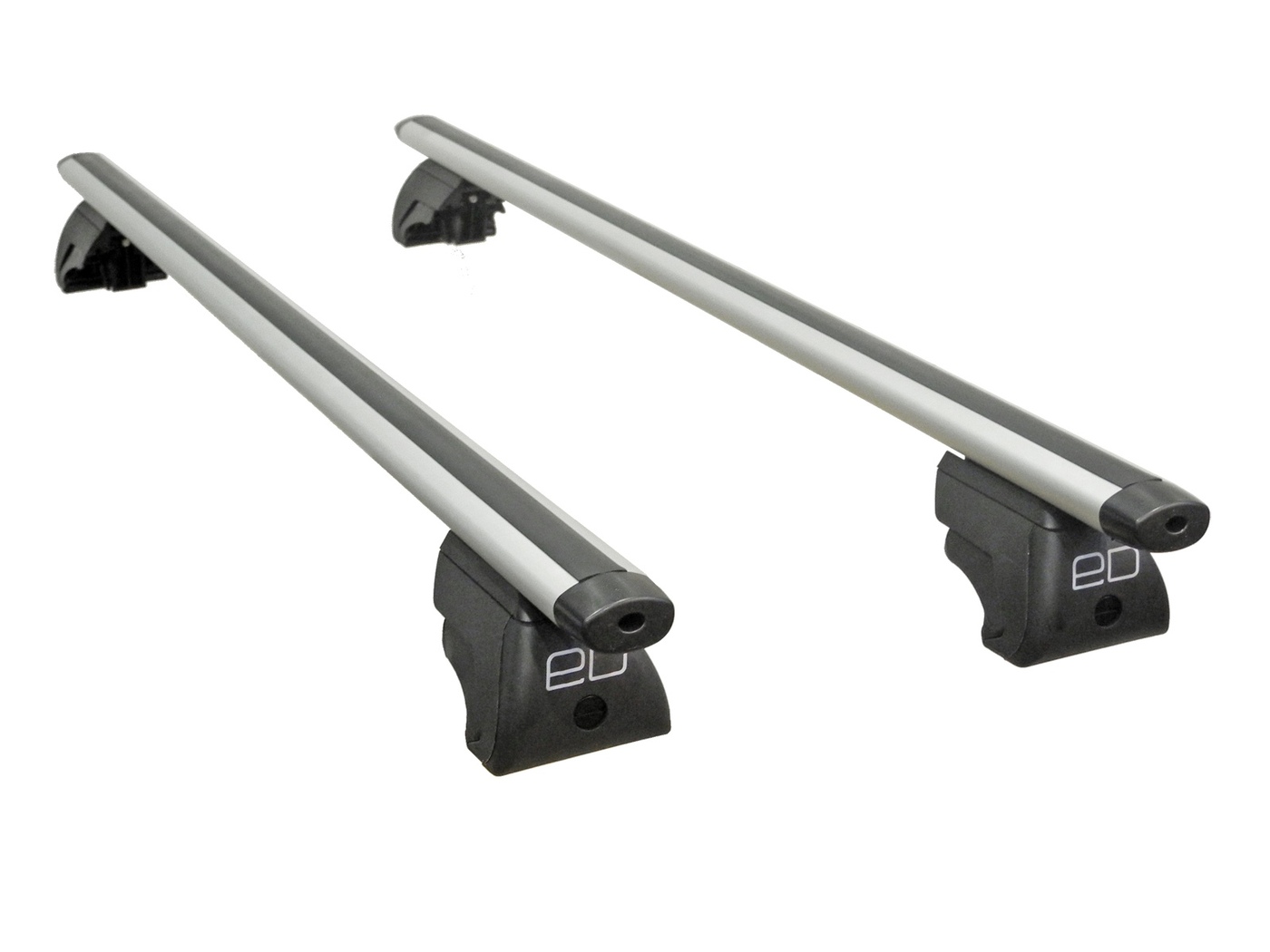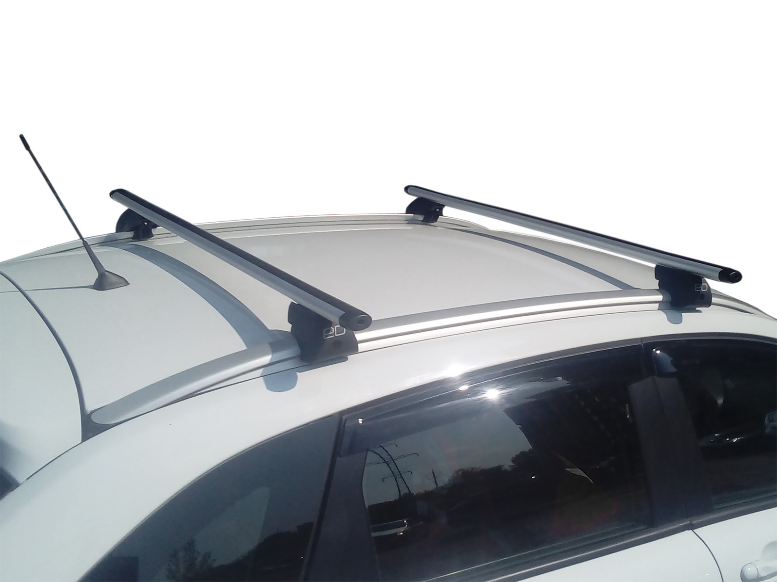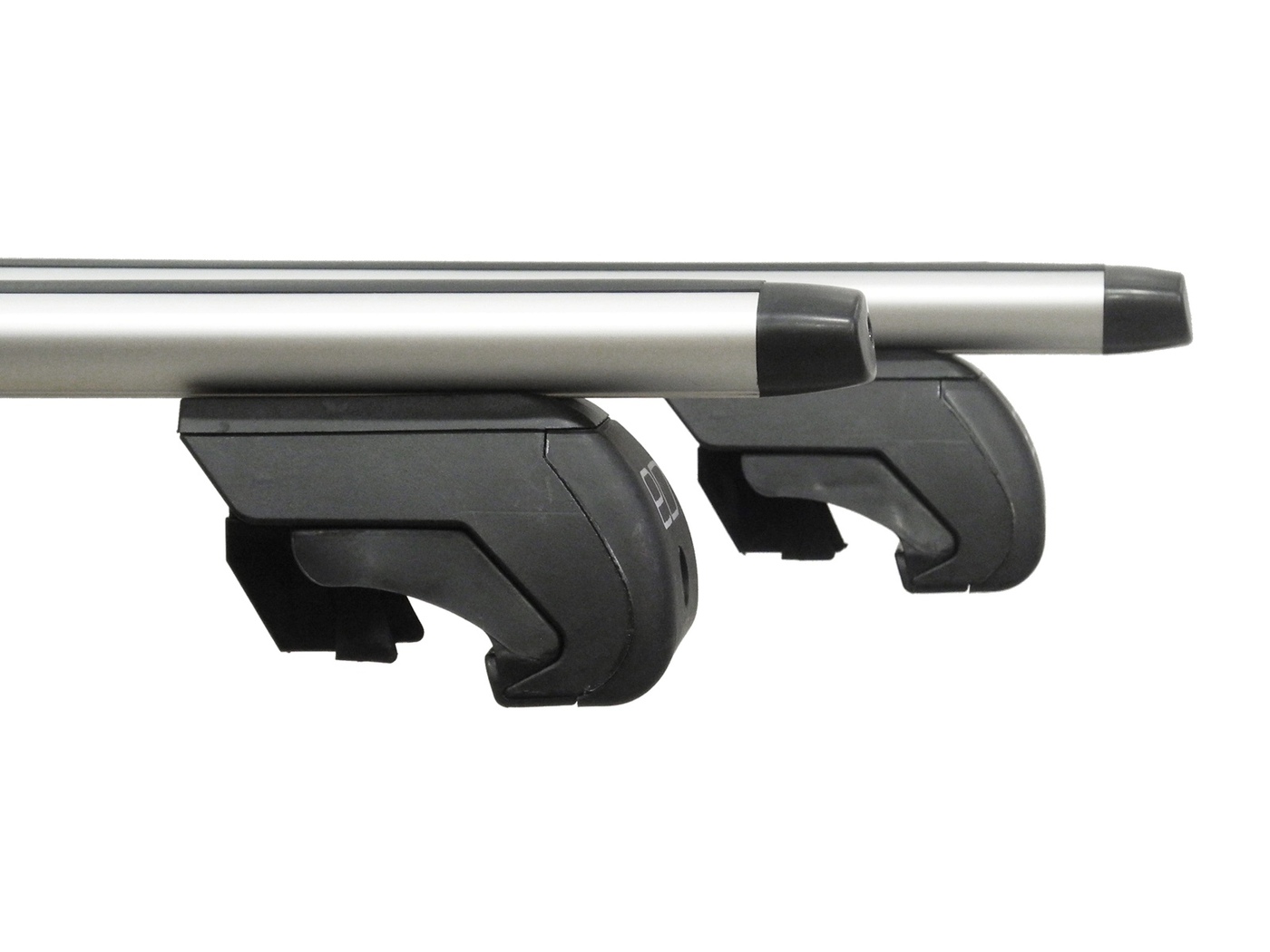 В комплект представленной багажной системы входят 2 поперечины и четыре крепления на рейлинги. Поперечные дуги изготовлены из алюминия, имеют аэродинамический профиль, их длина - 1250 мм, сверху дуг проходит Т-профиль, предназначенный для установки дополнительного оборудования - велокреплений, лыжных насадок, фиксаторов груза и т.д. Концы дуг закрываются пластиковыми заглушками. Аэродинамические дуги представлены в 2 цветах: серебристо-серый и чёрный.