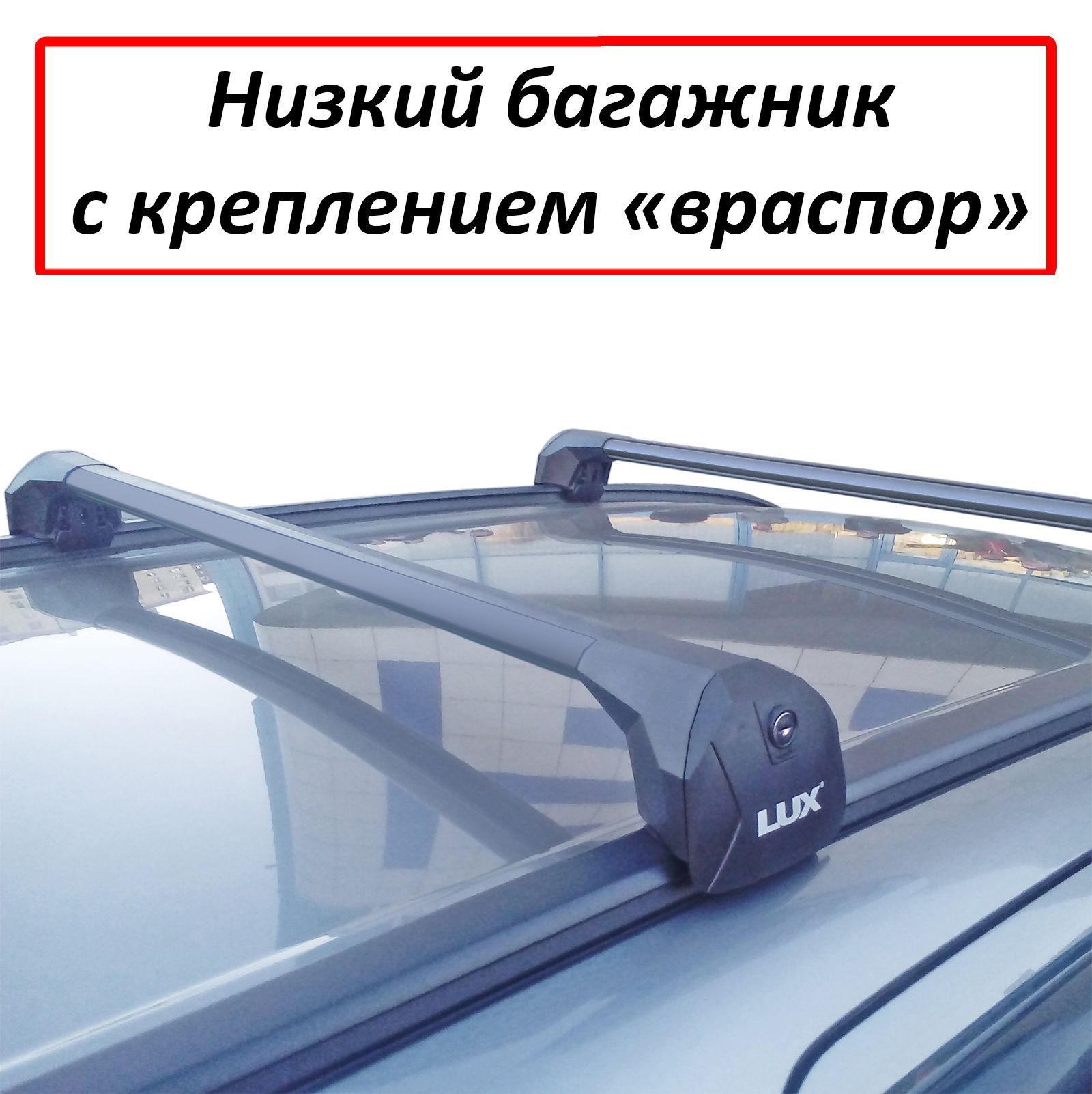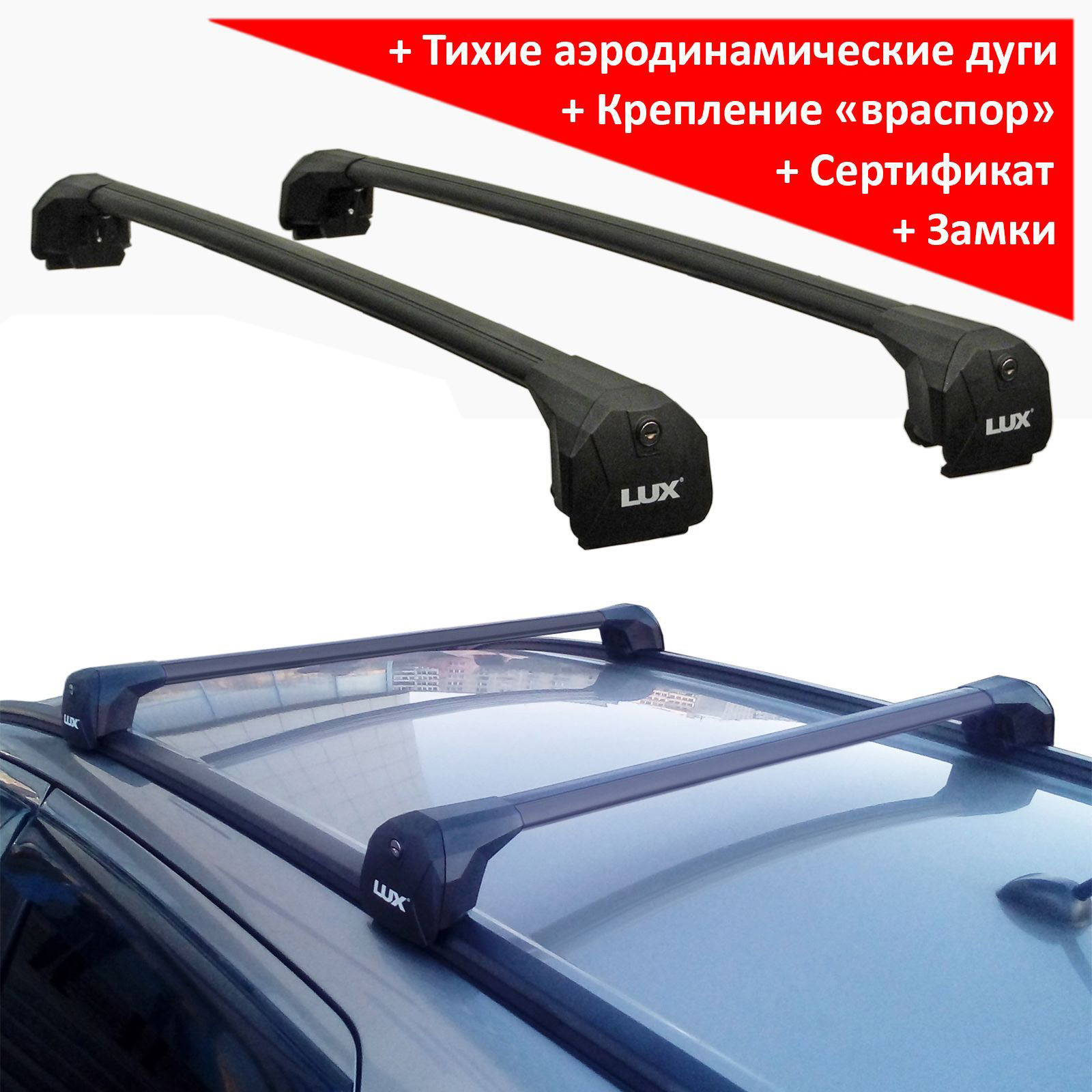 Багажник на интегрированные рейлинги Lux Scout (враспор, без вылетов), черные аэродинамические дуги, с замком. Нагрузка до 85 кг.