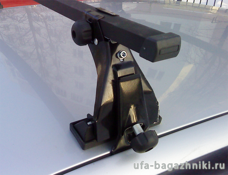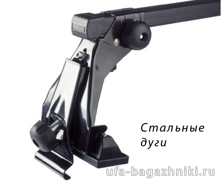 Багажник состоит из стальной опоры и стального прямоугольного профиля (поперечины) 20x30 мм, длиной 1100 мм, толщина стенки - 1,5 мм, с пластиковой оболочкой поверх дуги. Опоры имеют вставляемые резиновые подушки для лучшей посадки и устойчивости конструкции на крыше. Фиксация производится при помощи специальных прижимов за дверной проем.