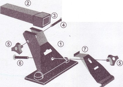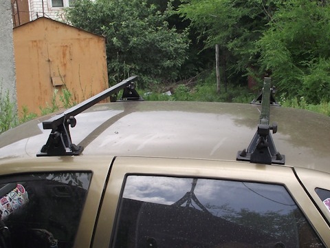 Основой багажника являются 2 поперечные дуги прямоугольного сечения, изготовленные из стального профиля, длиной 115 см. Каждая дуга имеет защитную рельефную оболочку черного цвета, концы закрываются пластиковыми заглушками. Дуги крепятся на систему стальных опор посредством винтов с барашками. Фиксация на крыше производится при помощи металлических прижимов за дверной проём. Конструкция опирается на крышу автомобиля посредством резиновой основы, которая сохраняет лакокрасочное покрытие кузова от потертостей и царапин.
