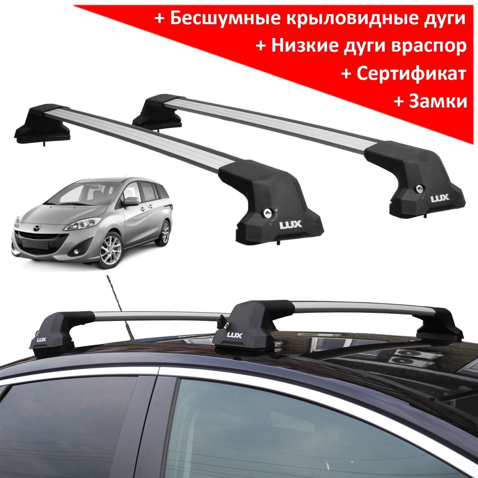 Багажник на крышу Мазда 5 (Mazda5 CW, 2010-2018), Lux City (без выступов), с замком, серебристые крыловидные дуги