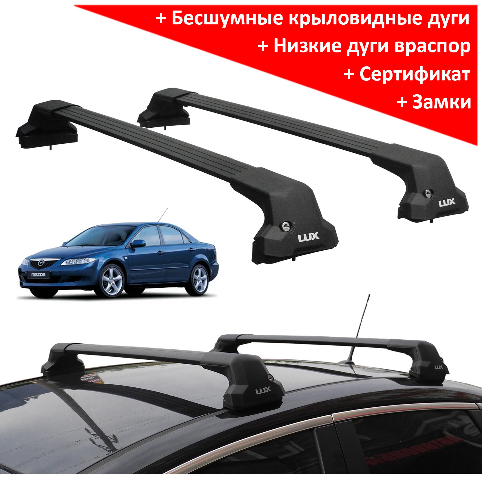 Багажная система Lux City для Mazda6 GG, 2002-2007 (враспор, без вылетов), производство - Lux (Россия, Москва). Черные дуги. Грузоподъемность до 75 кг