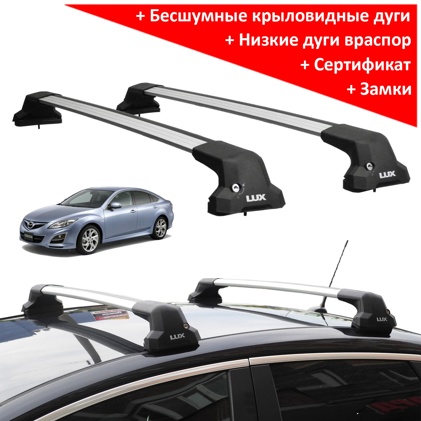 Представляем багажную систему Lux City на крышу Mazda 6 (GH, sedan/hatchback, 2007-2013) от российского производителя - марки "Lux". Цвет дуг - серебристый.