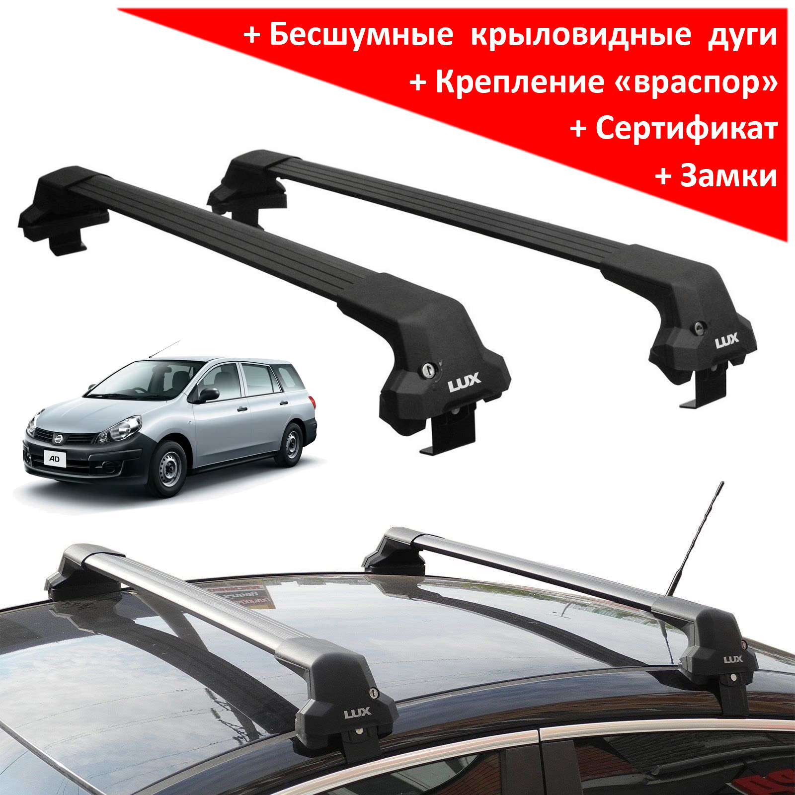 Представляем багажную систему Lux City на крышу Nissan AD Y12, 2006-... от российского производителя - марки "Lux". Цвет дуг - черный.