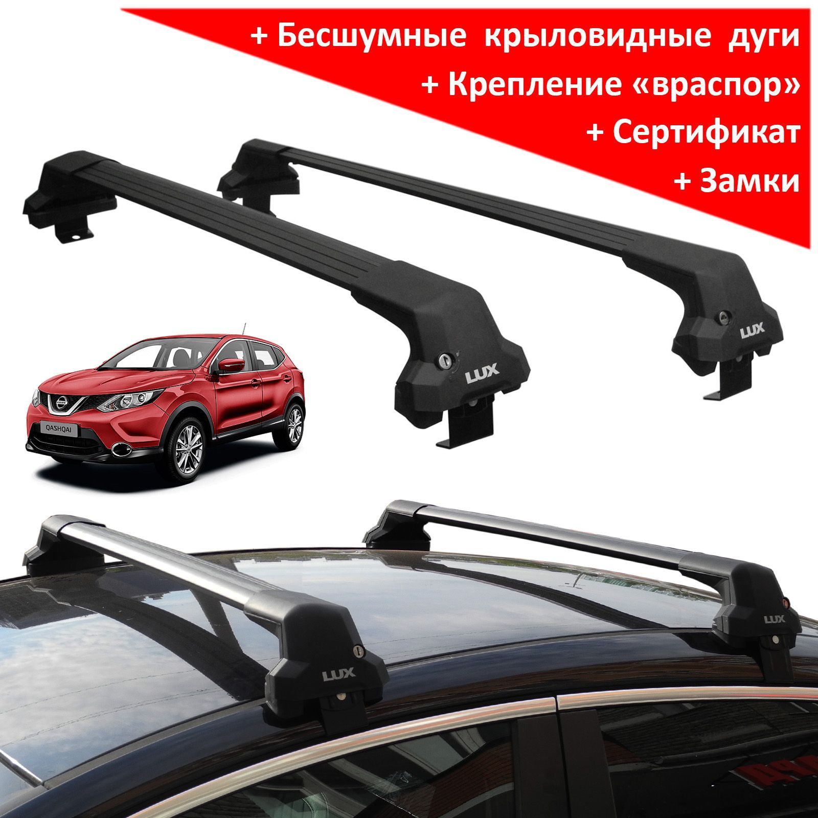 Багажная система Lux City для Nissan Qashqai J11 (враспор, без вылетов), производство - Lux (Россия, Москва). Черные дуги. Грузоподъемность до 75 кг