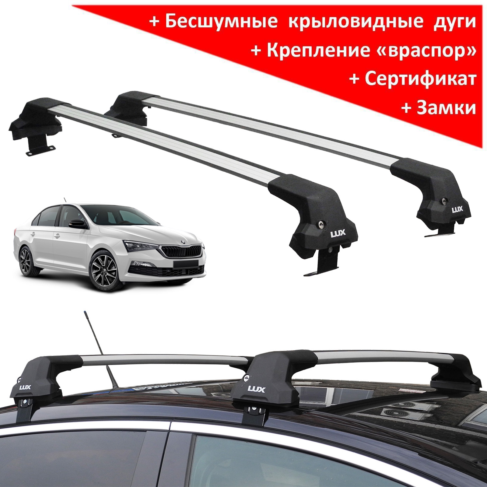 Багажник на крышу Skoda Rapid, марка Lux City (без выступов), с замками и серебристыми крыловидными дугами.