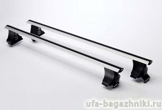 Две поперечные дуги длиной 1100 мм имеют аэродинамический профиль и изготовлены из анодированного алюминия. Каждая дуга снабжена пластиковыми заглушками на торцах и имеет сверху специальный Т-образный паз евростандарта для установки дополнительного оборудования (лыжных и вело креплений, автобоксов). При отсутствии доп.оборудования паз закрывается резиновой прокладкой. Опоры изготовлены из полиамида, черного цвета. Багажник подходит для моделей ВАЗ-2110 седан и ВАЗ-2112 хэтчбек.