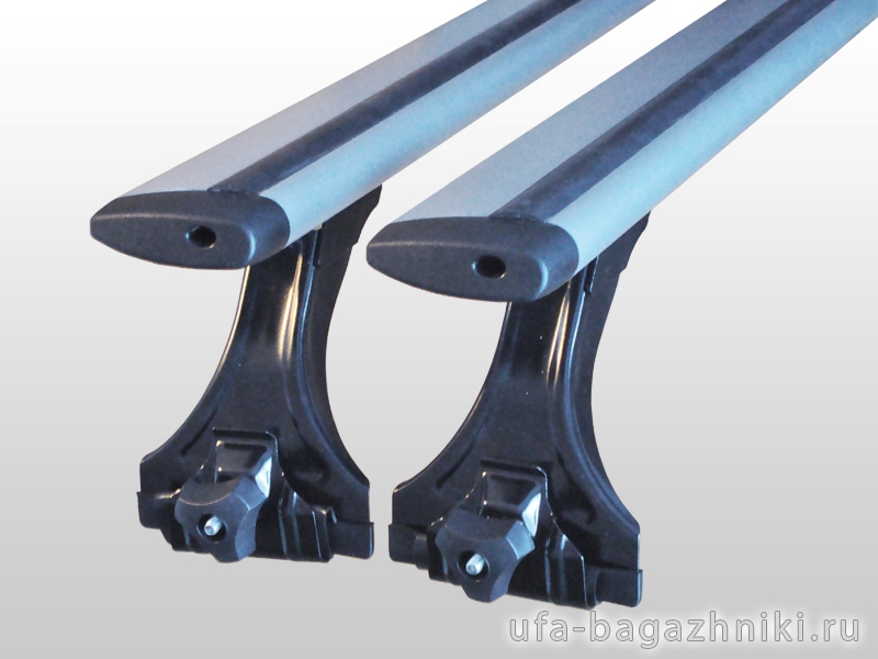 Профиль дуг - крыловидный шириной 8 см, длина - 1200 мм. Материал - анодированный алюминий, внутри профиля есть дополнительные ребра жёсткости. Сверху дуг проходит Т-паз, предназначенный для установки дополнительного оборудования (лыжных, велокреплений). Стойки полностью оцинкованы и окрашены порошковой краской, входящий в комплект крепёж также полностью оцинкован. Двойная система крепежа, включающая в себя по две закладных на одну стойку, позволяют надёжно зафиксировать аэродинамические рейки на стойках. Устанавливается конструкция на водостоки кузова автомобиля при помощи винтов с барашками.