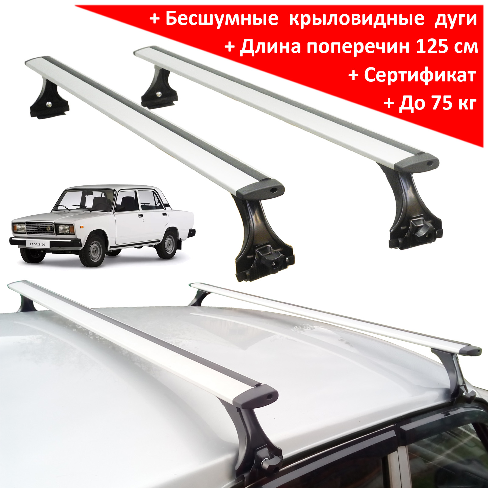 Багажник на крышу ВАЗ 2101-07 "Жигули", производство - Delta (Россия), с аэродинамическими (крыловидными) дугами, крепление на водостоки. Грузоподъёмность до 75 кг.