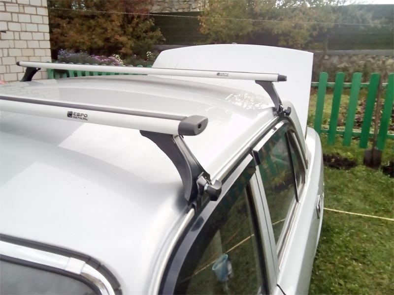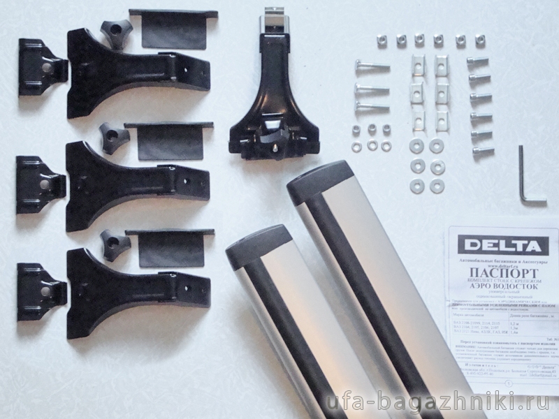 Профиль дуг - крыловидный шириной 8 см, длина - 1350 мм. Материал - анодированный алюминий, внутри профиля есть дополнительные ребра жёсткости. Сверху дуг проходит Т-паз, предназначенный для установки дополнительного оборудования (лыжных, велокреплений). Стойки полностью оцинкованы и окрашены порошковой краской, входящий в комплект крепёж также полностью оцинкован. Двойная система крепежа, включающая в себя по две закладных на одну стойку, позволяют надёжно зафиксировать аэродинамические рейки на стойках. Устанавливается конструкция на водостоки кузова автомобиля при помощи винтов с барашками.