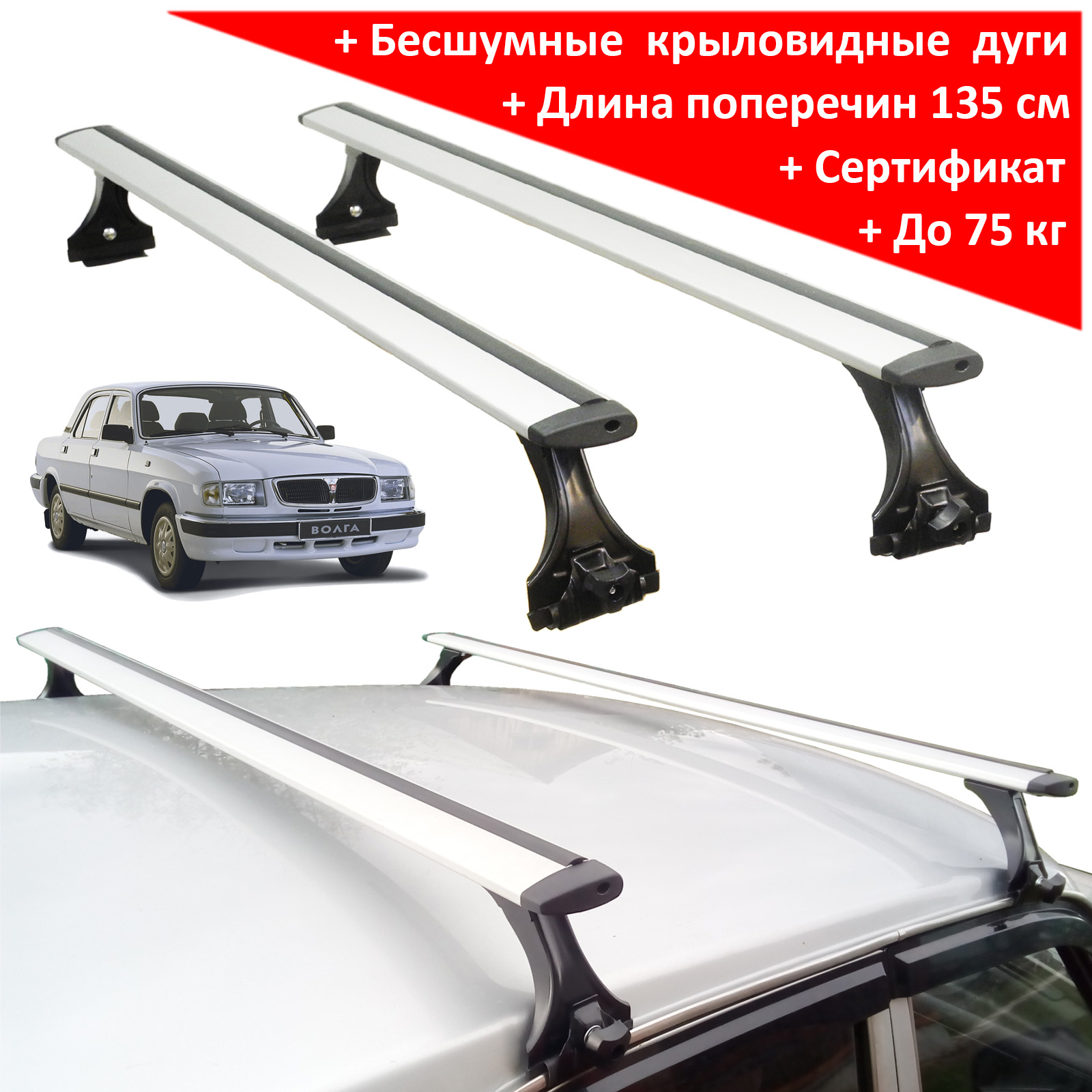 Багажник на крышу ГАЗ-3110 "Волга", производство - Delta (Россия), с аэродинамическими (крыловидными) дугами, крепление на водостоки. Грузоподъёмность до 75 кг.
