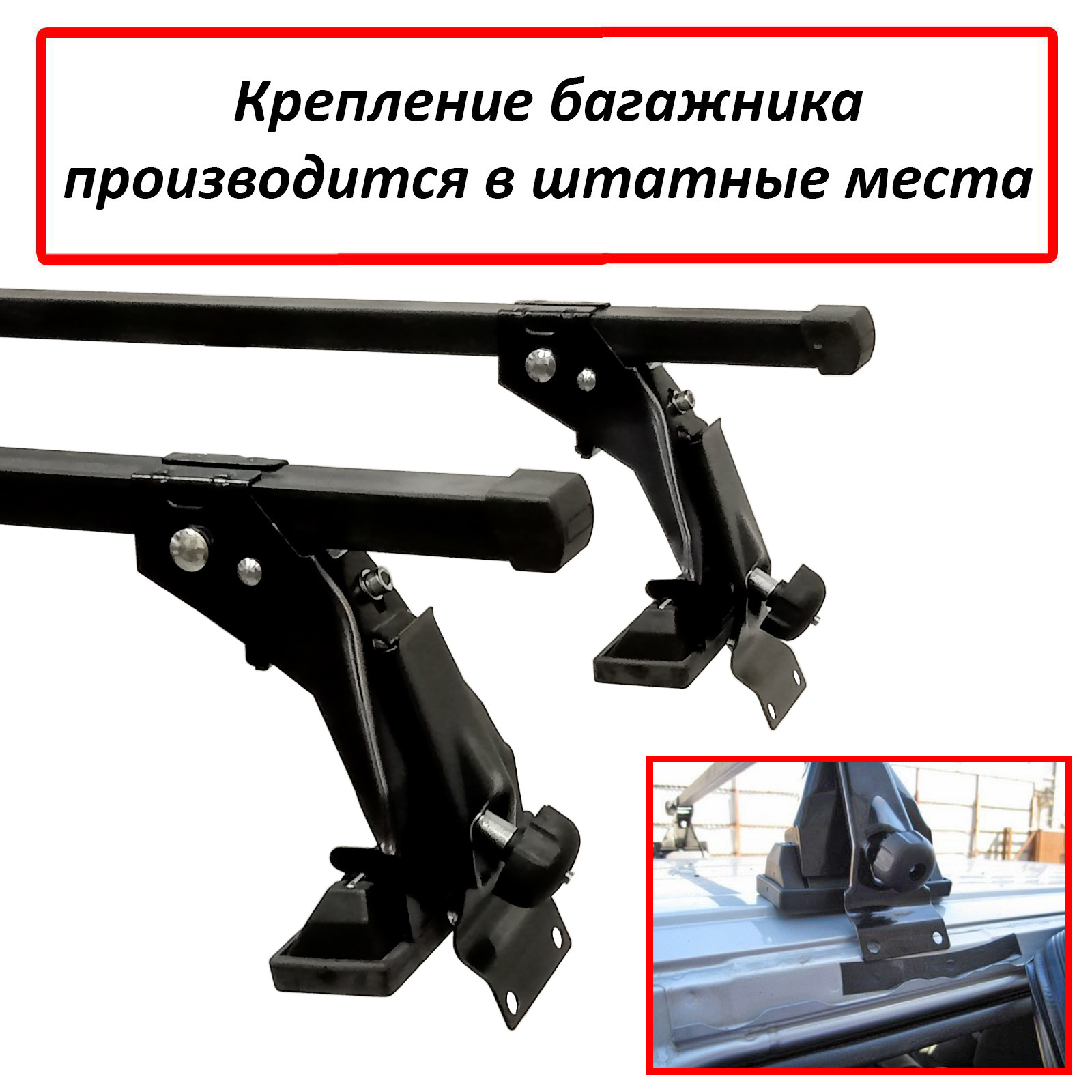 Багажник состоит из стальной опоры и стального прямоугольного профиля (поперечины) с сечением 20x30 мм, с пластиковыми заглушками на торцах. Длина дуги - 110 см. Сверху каждой дуги имеется плотная резиновая оболочка черного цвета. Багажник устанавливается в штатные места, с использованием отверстий, имеющихся под резиновой прокладкой вдоль дверей автомобиля. Для более надежной посадки имеются опоры на крышу с резиновыми подушками защищающими покраску кузова