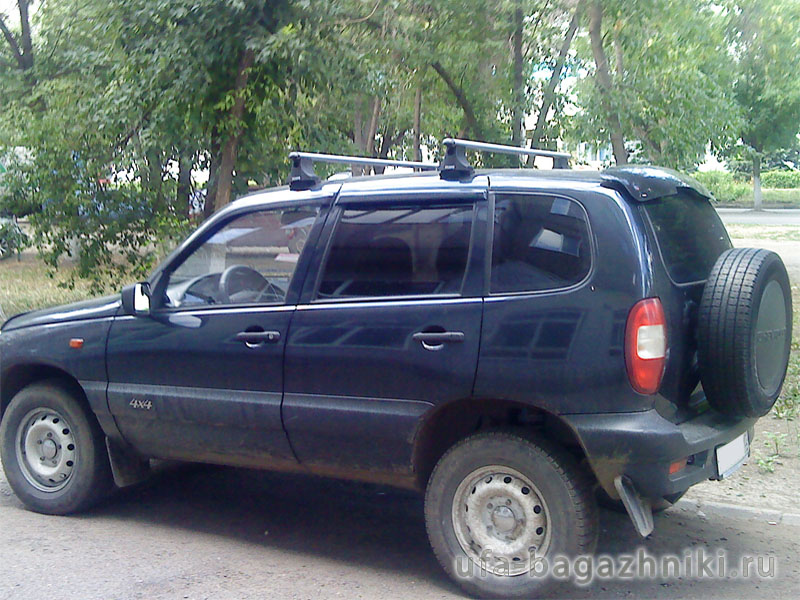 Автобагажник "Атлант" для Chevrolet NIVA с аэродинамическими дугами. Грузоподъёмность - 75 кг( до 120 кг при распределенной нагрузке).
