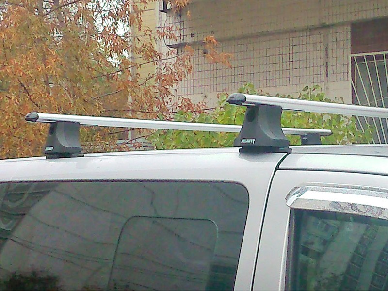 Дуги, опоры и адаптеры составляют основу данной багажной системы. Дуги аэродинамического профиля изготовлены из алюминиевого сплава, их длина - 1500 мм, сверху имеется Т-образный слот, предназначенный для установки дополнительного оборудования - лыжных или велокреплений. В свободном состоянии Т-слот закрывается резиновой прокладкой. Опоры из полиамида служат стойками для дуг, они также снабжены пластиковым замком для защиты от кражи. Фиксация осуществляется с помощью металлических прижимов за дверной проем минивэна.