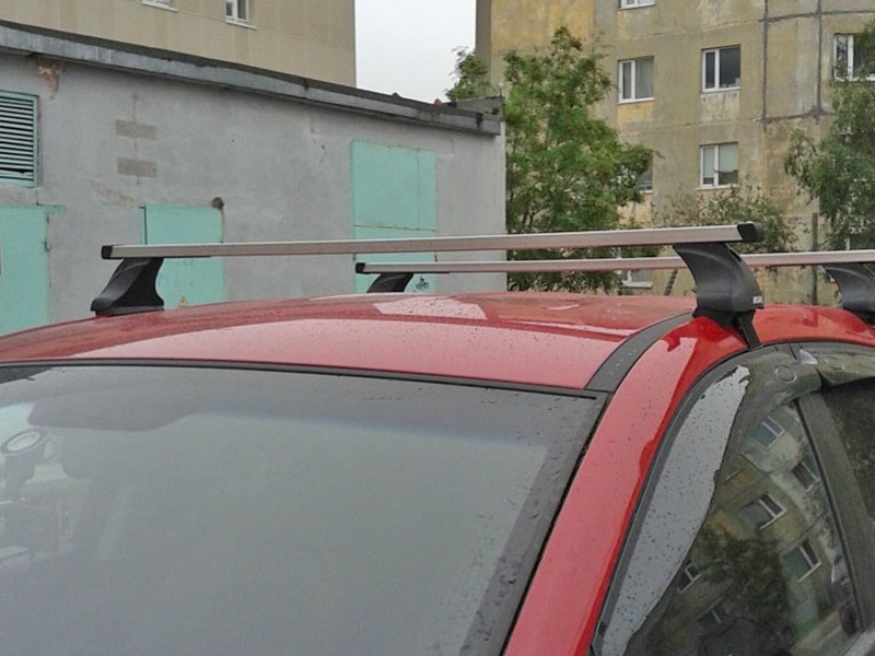 Профиль поперечных дуг - прямоугольный, их длина 1260 мм, изготавливаются из алюминия, цвет - серебристо-серый. Дуги ставятся на систему опор типа Е с усовершенствованной аэродинамикой, изготовленных из прочного композитного материала - полиамида. Внутри каждой опоры имеется секретный замок для защиты от кражи. Соприкосновение с крышей происходит посредством резиновых подушек, точно повторяющих контуры автомобиля. Фиксация всей конструкции производится при помощи прижимов за дверной проем автомобиля.