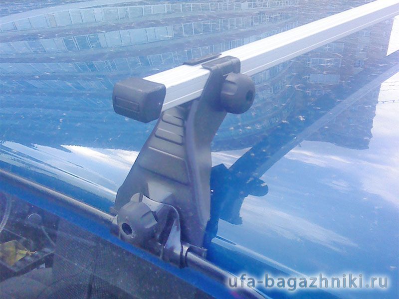 Багажник состоит из стальной опоры и прямоугольного алюминиевого профиля 20x30 мм, с толщиной стенки 2,5 мм, на торцах расположены пластиковые заглушки. Опоры крепятся на крышу на водосточные желоба, длина дуг - 135 см.
