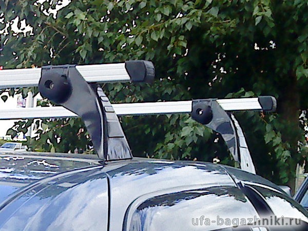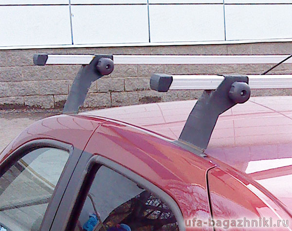 Багажник представляет собой 2 алюминиевые дуги (20х30 мм и длиной 1250 мм) светло-серебристого цвета, устанавливаемые на стальные опоры. Концы дуг закрываются пластиковыми заглушками. Сами опоры крепятся винтами в штатные места на автомобиле (2 отверстия под резиновой прокладкой вдоль дверей). Вес багажника не превышает 4 кг.